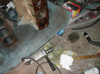 第252話 2005年最初は・・・・! 2005.1 今日は元旦・・・・・ どこに行く訳でも無いので ヨメさんにお伺いを立て ハコいぢりOKとの事・・・・・ 去年から足車に積みっぱなしだった 新たなお仲間 L28 F54ブロック君を分解する事にしました・・・ まあまあ格安だっただけに 状態は×××・・・です・・・・ まずは フロントカバーやら オイルパンやら クランクやらを取り外し・・・・・・ 意外や意外 中身は無傷! クランク コンロッドは行けそうです!! ではピストンを〜・・・・・・・ って下死点側には動きますが 抜き側には動きません・・・・ そんな訳で ピストンを1番押し下げた状態にして またまた登場!フレックスホーンでホーニングです! ・・・・・・・・・・・・・・・・・・ ・・・・・・・・・・・・・ ・・・・・・・・・ 小一時間やった所でようやくピストンが6発抜けました・・・・・ ほんでもってブロックは〜・・・・・・ う〜ん・・・許容限度ギリギリになってしまいましたが 一応使えるようです・・・・・・ ブロックは一応OK!ではピストンは・・・・・ キズは少ないのですがリングが固着していて・・・・ このまま無理矢理行っても リングを折るだけなので 使い古しの洗浄液をストーブの上に置いて グラグラと煮てみる事にしました・・・・ そんな事をやってるうちに もう夜・・・・・・・ このまま放置すると 凍ってしまうので 一端引き上げます・・・・・・ まだまだリングは固着したまま・・・・・ 次回も煮てみる事に・・・・・・・ |