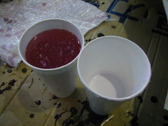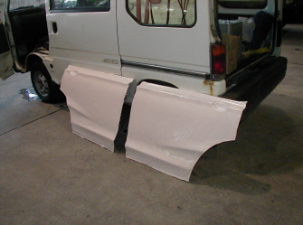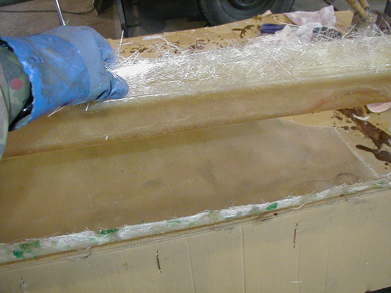 第255話 消耗品到着! 2005.1 去年のやり残し・・・と言う訳じゃ無いのですが 消耗品が無くなっていたので 頓挫していた 4ドアFRPリアドア作りを再開します 届いた物は〜・・・・・剥離材でした! 型は出来ているので 剥離材を缶からエアガンに入れて 塗装の要領で吹き付けます! う〜ん・・・少し余っちゃった・・・・・・ と言う事で おまけで小物の給油口フタを型取り後 剥離材塗布です・・・・・・・ ・・・・・・・・・・・ ・・・・・・・ ・・・・・ また横道にそれて 時間を無駄に使っていますが 本題に戻ってドア作り再開・・・・・・・・ FRPクロスを置いて〜・・・ ポリエステル樹脂に硬化剤を混ぜて〜・・・・・ ローラーでコロコロと脱泡・・・・・・ 1層目完了! では2層目に・・・・・ ・・・・・・・・・・・・・・・・・・・・ ・・・(行程は同じ)・・・ ・・・・・・・・・・・・・・ 2層目完了! そうこうしてるうちに1層目が有る程度硬化して来ました! カチカチになるまでほったらかしてからだと お高い剥離材を使ったとしても 剥離が面倒なので 1層目に使った紙コップに残ったポリエステル樹脂を 指でちょっと強く押して 指紋が付く程度の所で剥離です! ペリッ! 剥離完了です! 一度剥離しておいて もう少し硬化した後 また型の上に置いて 3回目の積層です! ローラーでコロコロ〜! ・・・・・・・・・・・・・ ・・・・・・・・・・ ・・・・・・ ホイ完了! 後は3層目がある程度硬化するまで待ちます! ・・・・・・・・・・・・・・ ・・・・・・・・・・・ ・・・・・・・・ 1時間後・・・・ 型から外して 表側にナニをするかと言うと〜・・・・ じゃじゃ〜ん!ゲルコート登場!! 種類は粉末の物とポリエステル樹脂に混ざっている物と2種類ありますが 今回は 混ざっている物をチョイス! (こちらの方が 混ぜた時ダマダマになりにくいので・・・・) ちなみに粉末だとポリエステル樹脂10に対し粉末1 混ざっている物は 5:1ぐらいで混ぜます (ゲルをもっと薄くすれば皮膜は薄く 濃くすれば厚くなります) 硬化剤の分量も ゲルが固まりにくいので50:1ぐらいに増します! 後はこれをはけなどで塗りたくればOK! はけだと毛が混ざる場合がありますので ボクは小さいペイントローラーを使ってますが・・・ 後は 硬化剤の赤みが消えた頃が大体硬化した目安なので しばし待ち・・・・・・・ ・・・・・・・・・・・・・・・・・・ ・・・・・・・・・・・・・・・・ ・・・・・・・・・・・・・ 数時間後・・・ 本当にカチカチになるまでは 後数日かかりますが 一応表皮は完成! FRP製品らしく波打っていますが サンディングとパテで修正すればOKとなります! その前に ガラスの枠作りや 裏側の補強も・・・・ まだまだ完全に完成まではほど遠いですが 一歩前進と言う事で・・・・・ |