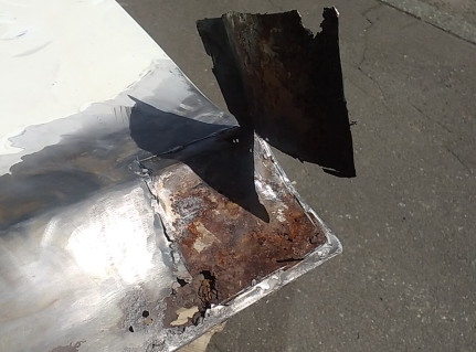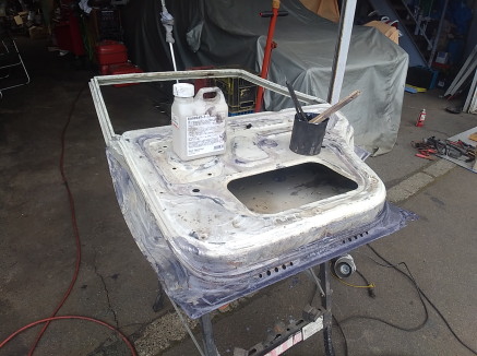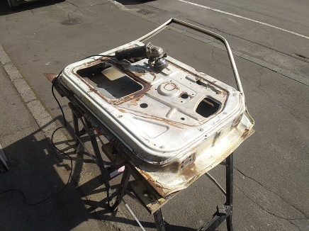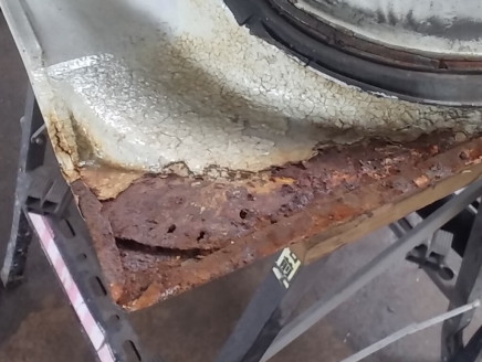 2025.9![]() 裏側角の状態です 下側はどこも同じような状態です ![]() ドア部品のバラしも終わったので 早速カップワイヤーでサビ落としして行きます カップワイヤーの入らない角部分は ポータブルのサンドブラストで落としますが コンプレッサー容量が少ないので 一瞬当てて〜エアが貯まるのを待って〜 の繰り返しです サビ浮きが見られない箇所の塗装とかは 上塗りしちゃう予定なので剥がしませ〜ん ![]() 右ドア後方にも何か貼ってありましたが 左ドアにも同様に貼ってあります 流石に見ないふりは出来ないので 剥がしてみます ![]() サビ落としも終了したので 進行を鈍化させる意味も含め 中側と表側の鉄板むき出し箇所に サビ転換液を塗布しました 乾かない事には次の作業に移れないので 今回はここまで 次回は切り貼り作業になると思いま〜す |