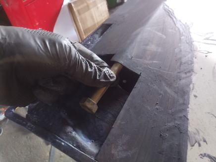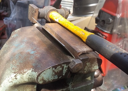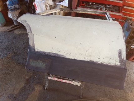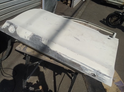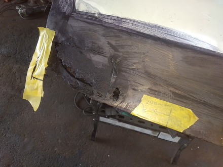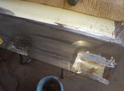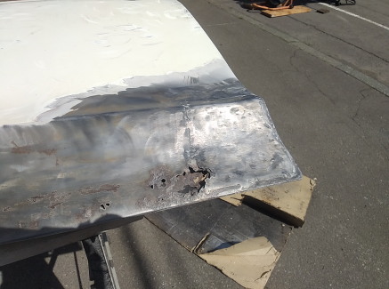 2025.9![]() 裏側ベースに腐食で穴開き箇所があるので まずはそこを切り貼りと溶接穴埋めで直します 内部のビードは削って均さないと この上に切り貼りする部品のジャマになりそうなので ここはちゃんと削っておきます ![]() プレスラインのR形状に近そうな廃材を 探しています このボルトが一番近い感じですね〜 ![]() 曲げた部品を取り付けました 上手く行ったようなダメなような・・・ 後はパテで何とかなりそうなので 次の箇所に移ります ![]() 溶接取り付け中で〜す ![]() 工程は殆ど同じですね この面もほんの少しRが付いてる箇所ですが 幅が小さいので平面のままでも大丈夫そうです ![]() これで左ドア右隅の修復は完了です このドアの修復が必要な箇所は ここだけのようなので この後裏表にサビ転換液を塗りたくって 作業終了です 次はリア側のドアとちらかに着手しようと思います |