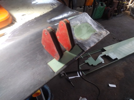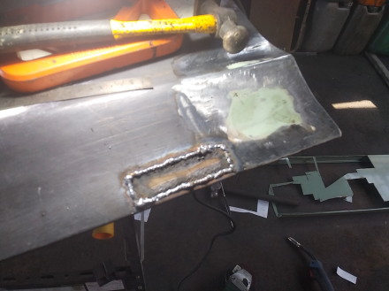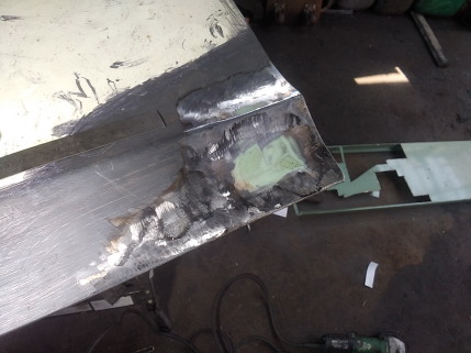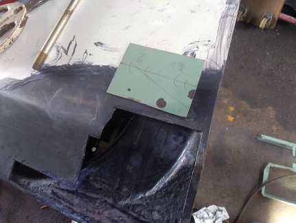 ![]() 左ドアの切り貼り作業に取り掛かります 腐っている所をカットしました 残念なのは下から10センチぐらいの位置にある プレスラインまで腐食が進んでいて 鋭角プレスなら良かったんですが 丸いプレス形状なので 同一形状に作るのに一手間かかりそうな 気がします・・・ ![]() 流石に1枚物での作成は難しいので ブロックごとに切り貼りしようと思います まずは手間がかかりそうな プレスライン部分の部品を廃カレンダーで 型取りして切り出して来ました まだ平面の状態なので 曲げないといけませんが どういうふうに加工するか考え中です ![]() ボルトのRを使って曲げました ![]() 型取りと作成までは変わりません 僅かにRしている部品なので 単管パイプや膝頭に押し当てて 何となく合うよう曲げていきます ![]() 溶接完了です 表側なのでビードを均して次の箇所に移ります ![]() ここも溶接完了で〜す |
