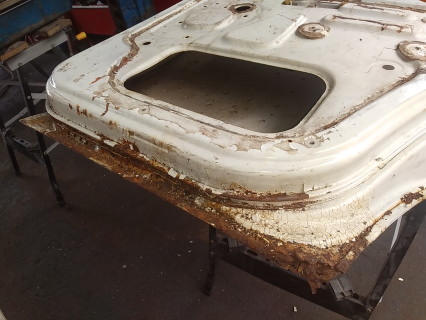 ![]() 修復を終えたフロントドアが周りに鎮座していいて 作業のジャマになって来たので 仮に取り付ける所からスタートです 腐った箇所は切り貼りしましたが 上手いこと修復出来てるのかは リアドアが出来ないと判断が難しいですね〜 ![]() 画像的には進んでない気がしますが 分解を終えました 大体の順番は ドアオープン機構→ガラスレギュレーター→ 中間ガラスレール→前側ガラス→後ろ側ガラス って感じですかね〜 ![]() 塗装の下にサビ種が無くなる所まで サビ落とし&塗装剥がしをやりました 結構なパテの量だな〜とは思いましたが やはりここも後方に何か貼ってありますね〜 面倒な予感しかしません・・・ ![]() ようやくサビ落としを終えたので 全体にサビ転換液を塗布しておきます 中身の端部分も液を多めに垂らした後 グルグル回しながら位置を替えて 隅まで液が行き渡るようにしました 処理した効果が解るのは数十年先でしょうか? 今回はここでタイムアップ 次回から切り貼りに進む予定で〜す |