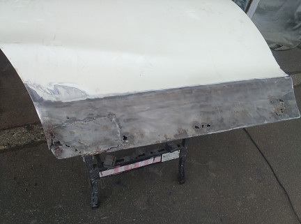 ![]() 右リアドア後端部分の修復に取り掛かります 角が腐食で無くなっていて 形状を戻さないといけないので 変な形にならないよう注意しながら進めます ![]() 切り貼りして復旧しました 形状は大体合ってるはず? と信じて突き進むのみ(笑) ![]() 型紙から部品を切り出して来ました ここもRが付いてるパーツなので 単管パイプやらなんやらに押し当てて ピッタリはまるように曲げて行きます ![]() ビードを削ったら この箇所は作業終了です |