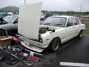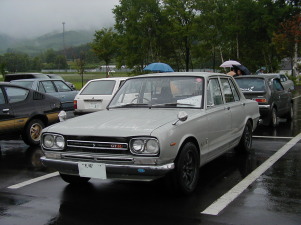 第139話 初イベント参加・・・ 2003.8 今年は土日と言う土日が仕事でツブれ 全然イベントに本人が参加していない状況・・・ そんな中 今年始めて本人参加のイベント 道北クラシックカーミーティングに行って来ました! しか〜し・・・イベント終始雨・・・・・・・・ しょうがないので 車の中で時間を過ごす事に・・・ 半ば盛り上がり諦めモードでいた所 HPリンクにもあるRUN&RUN氏のテントにお呼ばれ! 色々とお話をする事が出来ました! イベント終了後 ご迷惑ながら 同氏他複数氏共同の整備所を拝見する事に! ・・・・・・・・ 432やら2ドアRが騒然と・・・・・・ ・・・・・・圧巻です・・・・ ウチのキチとは大違いだ・・・・・・ その後しばしその場で談笑したのち 次にお酒のお呼ばれもしたんですが 翌日仕事の為 泣く泣くお断りし 帰りは動きのシブいワイパーと 濃い霧でフラフラしながら 夜の高速をノンストップで帰宅・・・・・ ・・・・・・・ かなり疲れましたが 楽しい1日でした! さ〜て 次は何のイベントに参加出来る事やら・・・ ほんでもって 今回参加されていたハコスカの方々です! |