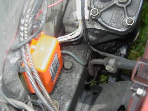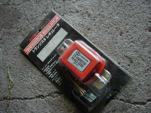 第137話 オークションで・・・ 2003.7 この前オークションを見ていたら フルトラレギュレータが出品されていたので 購入しました! ちなみに オルタは不具合を感じないので いまだにICじゃ無いです・・・・(笑) 純正のチリル式レギュレータも壊れてはいないんですが 機械的に充電を管理しているので 焼損などで突然壊れる事が多いです・・・ とりあえず信頼性の向上と言う事で取り付け開始です まずは分解して中身を見ます・・・ そして 基本的な回路図とにらめっこ・・・・・ 配線に当たりを付けて結線・・・ コネクタは 壊れたターボタイマーが同じ物だったので 拝借して〜・・・・ ホイ完成! そそくさと取り付けます なにかあるんじゃないかと思ったんですが あっさり成功!! ちゃんと充電してます これで 純正レギュレータともおさらば! 若干信頼性が向上しました! と言うか早くIC内蔵オルタに変えろっ! てコメントも聞こえて来そうだな・・・(笑) |
