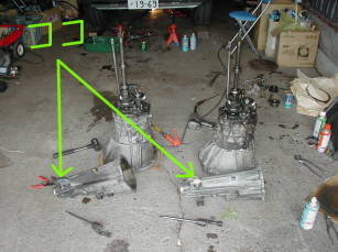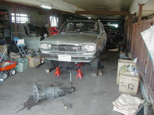 第148話 搭載! 2003.9 今日は昨日に引き続きミッションを・・・ と言う事で Z432用?71Aミッションに ハコスカ用リアミッションケースを取り付けます! まずはケース外し! そして比較すると〜・・・・ シフトコントロールロッドは同じで レバーの取り付け位置を変える事によって シフトレバーを寝かせているようです! 比較ばかりしてても作業が進まないので さっさと組み立ててと・・・・ ほい完了! お次は搭載と・・・・・・ これまた 今年はミッション当たり年だけあって 手際も良く(笑)30分程で搭載完了! まだまだ液状ガスケットが完全硬化して無いので ギアオイルは入れていません・・・・ 3日で完全硬化と書いてありますので それ以降に入れて 具合を確かめるだけです! あぁ・・・早く来週末にならないかな〜・・・・ |