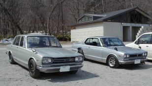 待ち合わせの支笏湖にて偶然ケンメリに遭遇! う〜ん・・・綺麗です・・・ 右 オイラーズ君の2ドアGT いらっしゃいませ〜! ついでなので2ドアGTも出して撮影 |