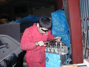 ピストン挿入に夢中のまさ〜し氏 トルクレンチに夢中のまさ〜し氏(笑) そんでもって 合間を見て 自分のL28も進め・・・・(爆) 今日の作業の成果はここまで! |