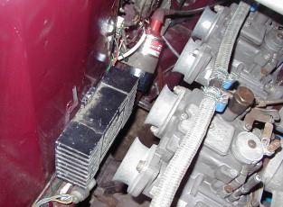第195話 GET品を・・・ 2004.5 先日某所から 昔なつかしFETのエルグなる物をGET! このまま放置しておいてもしょうがないので 動作確認がてら 取り付けて見る事にしました・・・ まずは 取り付け前の生存確認(笑)と言う事で バッテリーからジャンプして12Vを本体に入れて見ます ・・・・・・・・・ ・・・・・ ・・・ キーン! ウルトラのCDI程音は大きくありませんが CDI特有の高周波音が出ているので 多分OK!!ではでは取り付けです 本体はキャブの吹き返しで焦げないよう下の方に取り付け コイルも専用品のようなので交換 後は端子を繋ぎ変えて〜・・・・・ ホイ完成! ではエンジン始動! ブォン!!!! 1発で始動しました!さすが腐ってもCDI(笑) エンジンの具合は〜・・・・・・ 低回転 中回転はあまり変わり無し・・・・ 高回転は〜・・・・・・ 空ぶかしで8500以上回りそうな感じ・・・・・ 自制心が無いと完璧にエンジンを壊してしまいそうです・・・ と 動作は確認出来たのでそそくさと取り外し・・・・ と言うのも 現状の点火は画像の通りで MSDを予定しているので FETの方は・・・・・ まあ高回転まで火が飛ぶようですので・・・・ ん? 高回転?? そうだ! このまま 置いといてもしょうがないから GT−Rに付けよ〜っと・・・・ ホイ完了! 早速始動します・・・・・ ブォン! 油温が上がってからふかして見ます・・・・・ バォン バォン!!! ひ・・・ひぇ〜〜〜〜 タコメーター振り切ってしまいます・・・・・ (ちなみにオートメーター装着中) と言う事は1万以上回ってる・・・・・・ これまた 自制心が無いとブロー一直線です・・・ 気を付けよ〜っと・・・・ まあまあこんな古代兵器ながら結構な威力です とりあえずエンジンを壊さぬよう 楽しんで見る事に・・・・・・ |
