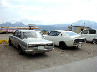 第192話 おいでやす〜! 2004.4 午前中に室蘭の箱乗り オイラーズ君から 「遊びに行きます〜」とのTEL 仕事の都合で遠方に行けない事もあり ドライブがてら仕事に差し支えない距離と言う事で 待ち合わせ場所を支笏湖のポロピナイに決定! そうと決まればハコで直行です! ちょっと早めの到着で駐車場を覗くと偶然ケンメリに遭遇! う〜ん・・・・・ボクの乗りっぱなし号と違い かな〜り綺麗で羨ましい限りです・・・・・ いきなりで見ず知らずながら オーナーの方と旧車談義を・・・(笑) かな〜り楽しい時間を過ごせました!(笑) しばしの歓談後ケンメリの方は帰路に・・・ お次はお客様のオイラーズ君登場です! しばしお会い出来なかった間に チンスポがつや消しブラックに・・・・・・・ かな〜りいい感じでまとまってます! ちょっとこの仕様には心動く物がありますね・・・(笑) 合流後 昼時を迎えていたので 千歳のファミレスで食事を取りながらハコスカ談義!(笑) 食事の後は場所をキチに移し またまたハコスカ談義!(爆) 毎度毎度の事ですが ハコスカの話をし始めると何時間あっても時間が足りないぐらいです・・・(激爆) 結局 若干日が落ちるまでしゃべり倒して 怒濤のごとく時間は過ぎ去って行きました・・・・ また 機会があったら遊びに来て下さいね〜! 併せて そちらに行く機会が出来た時はヨロシクです〜!!(笑) |