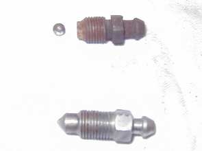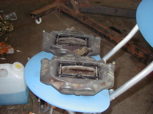 第198話 ハコスカ三昧そのU! 2004.5 今回も2部更正です!(笑) まずは午前の部 たまたま某氏の所に立ち寄る機会があり なにか苦戦の様子・・・・・・・ アルフィンドラムが錆びて固着し ウンともスンとも言わないそうです・・・・・ そんでもって見て見ると〜・・・・ ん? なにか足りない・・・・・ なんだろう?????? あっ! ノーマルドラムには付いている ドラム呼び出しボルト穴が無い!!!! 何だか数ヶ月後の自分を見ているような気がするので 当然まだ外れるうちに加工その2を施します!! まずはノーマルのドラムをアルフィンドラムの上に 逆付けして ドリルで軽く穴場所を決めます 相手はノーマルの鉄と違ってアルミなので ネジ部の強度が無いので ノーマルは呼び出し穴が2個なのですが 取り外し時 負荷の分散を考えて ノーマルドラムを90度回し 呼び出しの穴を4個設ける事にしました・・・ 穴位置が決まったので 外して穴を貫通させた後 お次はその穴にタップ立てで完成です! これで一応安心出来たような気が・・・・・・・ 完成!呼び出しボルト穴付きアルフィンドラムです・・・ お次は午後の部です こちらもブレーキ関連で かねてから入手済みのMK63ソリッド用キャリパーを オーバーホールしました オーバーホールと言っても ゴム類は破れ 漏れが無ければ再使用なので ただの分解組み付けですね・・・(笑) と言う事で分解・・・・・・・ キャリパー ピストンははブレーキクリーンを使い洗浄 ゴム類は一度 お湯で煮た後具合を確認 黙視で傷などは無いようです・・・ これにラバーグリスを塗布・・・・ シリンダーのOリング?は再使用時 ひっくり返して付ければ性能が若干回復するので 今までブレーキシリンダー下側になっていた面を 上に向けて取り付けます ブリーダーがかなり錆ていて 再使用を断念・・・・・・・ ノーマルは ワンマンブリード出来る?ようにしたかったのか チェックボール入りのタイプですが 普通のヤツに交換・・・・・・・ ブリーダーは下の普通のヤツに交換 (上ノーマル) これで全てを組み付けて〜 板切れを挟んでエアを吹き込みながら水没・・・・ リークチェックも異常なしと言う事で ホイ完成! これはのちのちGT−Rに使用予定なので そのうち 取り付け編をお届け予定です(笑) 早く付けたいな〜・・・・・・ |
