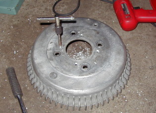 先週取り付けたばかりの アルフィンドラムですが・・・ ノーマルにはある 呼び出しボルト穴が アルフィンには無いのです・・・・・・ 加工開始!ノーマルドラムを逆付けして 穴位置ガイドに・・・ 外して完全に穴を貫通させた後 タップ立て・・・・ オーバーホールと言っても 分解組み付けだけです・・・ 組み付けて完成! |