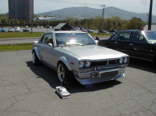 第199話 滑り出しイベント!! 2004.5 北海道ルスツリゾート駐車場にて クラシックカーイベントあり!と言う事で参加して来ました〜! ちなみに自分の車を出すイベントは今年初です 朝出発する時は曇りだったものの 現地到着時には快晴! そのまま始終良い天気の1日でした 参加台数は 中規模のイベントだけに40台程 そのうちハコスカはボクを含め5台 と・・・面々を見て見ると〜・・・・ 知り合いのオイラーズ君の他 L中殿や俺流殿 ちん殿と掲示板でお馴染みの方々でした!(笑) 当然そうなればWEB上を飛び越えて ご対面でハコスカ談義!(笑) 途中またまたお知り合いのN氏やM氏も登場し 始終ハコスカ談義・・・・・(爆) こんな感じで不思議な事に ハコネタだけは 尽きる事がありません・・・・ そんな感じで 15時頃まで過ごしイベント終了で解散しました L中殿や俺流殿からは ボクの小汚い基地来訪予定の話まで 飛び出しました!! 大したおもてなしは出来ませんが 大歓迎でお迎えしますので おヒマな時予定が合えば是非是非お越し下さいませませ!! |