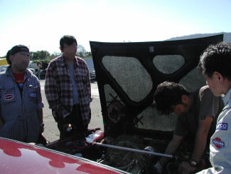 第235話 2004白老スカイラインミーティングリロード! 2004.10/24 先回の9/23白老スカイラインミーティングは226話のように 遺恨を残す結果になった為か 主催ショップのインターセプター様のご厚意により 前回走行した方は無料で走る事の出来る スカイラインミーティングリロード!が開催されました! 当日は朝は冷えたものの日中は 10月末と思えない陽気で素晴らしい気候でした さてさて 私の方は今回GT−Rでの参加は見送って 2ドアGTでまさ〜し氏と私でGT−Rの分の枠を使って 同じ車のダブルエントリーでの参加でした! しかもまさ〜し氏 調達&ドライブ搬送車での白老入り GT−Rは寒くなった時の避難場所として随行です サーキットに到着後 すぐさまフリー走行開始! と言うのも開催ショップのご厚意と言うのもあり 他の走行会の合間を縫っての開催なのでした! まずは まさ〜しさんの参加するクラス0から!! ちなみにクラス0の旧車勢は 俺流氏2ドアGT オイラーズ氏2ドアGT ケンメリ番長氏ケンメリGT−R まさ〜し氏 2ドアGT(ハコ馬鹿号)の4台です! まさ〜し氏は車に慣れないようで 無理無く無難に走行のようでした! ![]() クラス0 まさ〜し氏走行中! ちなみに上のハコは俺流号 さてさてお次はクラス1のフリー走行!ボクの番です! またまたちなみにこちらのクラスの旧車勢は AKO氏のジャパン 本人ドライブハコ馬鹿号の2台でした では出陣! しか〜し・・・・・・数周回った所で〜・・・・・・・ パホッ・・・・・・・ そんでもって失速・・・・・ 突然エンジンが止まってしまいました・・・・・・ 1回目のフリー走行で終了・・・・・ クラス1終了後回収されピットへ・・・・・・・ 到着後まさ〜し氏 N松氏とともに原因を調べた所・・・・・ ・・・・・・・・・・・・・・・・ ・・・・・・・・・・・・ ・・・・・・・・ コイルのパンクでした・・・・・・ ん?まてよ???コイルならGT−Rに積んでたな・・・・ と言う事で交換! しかしながら CDI用では無い為 MSDを殺して装着です! ![]() このボッシュCDIコイルがパンクして〜・・・ ![]() ただのフルトラコイルに交換! 交換終了時 既にフリー走行が一回りして 2回目のクラス1が始まっていました・・・・ 他にもクラス2でN松氏の2ドアハコが走行・・ (クラス2の旧車勢はN松氏のみクラス3の旧車は無し) 走行を見たかったのですが・・・・・・ と言う事はダブルエントリークラス0で参加の まさ〜し氏は2回目を走る事が出来ず 申し訳無い限りです・・・・・・ とにかく再度出陣! なかなかいい感じですが イエローフラッグもあり 満開タイムアタックは出来ずじまいで走行・・・・ そして数周していると・・・・・ミッション付近から異音が・・・・ クラッチを切ると・・・・・ピョロピョロピ〜・・・・ レリーズベアリング もしくはクラッチが変! 切れきっていないのか たまにシフトが入りません・・・ 搬送車で来ている事と リタイヤはイヤなので このまま壊れるまで走る事にしました! そんな感じで クラッチから 切る度にピロピロガラガラ言いながら終了・・・ LAPを確認するも1回目2回目共計測器の不調からか計測されず どんなもんかも解らずじまいでした・・・・ お次はクラス32回目のフリー走行 こちらは前述のN松氏の2ドアハコGTが出場なので しばし観覧です! ご本人曰く 上があまり調子よく回らないので不調です・・・ との事でしたが それにしても現行車を押さえに押さえての走行・・・ 速いです・・・・・ さてさて大急ぎだった朝方の走行も終わりしばし休憩 その後は正午頃に本戦です・・・ そんな中 計測器不調でLAPが取れなかった為 11時頃に走らせて頂ける事に・・・・・ では一足先に出番です! クラッチは〜・・・・・・・ 走行を重ねるごとに悪化・・・・・・・ シフトも合わせないと殆ど入りません・・・・ そして5週目・・・・・ シャラシャラガキーン! 完璧にクラッチが崩壊・・・・・・・・・ 2004年サーキット活動これにて終了でした・・・・・・・ まあ壊れるまで走る!と名言していたので 気分的に変な落ち込みは無しです! かえってHPの更新ネタが出来たかな?ぐらいの勢いで行きます!(笑) 話は戻ってお次は本番のレース! クラス0では俺流氏大激走! 序盤から1位で 追う車が無く追われ続ける中 モチベーションを落とさず1位でチェッカー! う〜む凄い・・・・ ケンメリ番長氏は安定した走りで完走! 今回初サーキットのオイラーズ氏は リアショックの抜けで惜しまれながらスローダウン・・・・ ボクと同じく来年へ向けて闘志を燃やすのでした! ![]() オイラーズ号はリア足回りのトラブル・・・・ さてさてお次はクラス1 前回の白老では オルタのトラブルを抱えていたAKO氏ジャパンですが 今回は調子も良く 序盤から1位を独走! 年の功?か安定した走りでそのままチェッカーを受けるのでした! お次はクラス2 こちらはN松氏が走行! 周りは全てR32〜からと言う過酷な状況でしたが 走りに走って中盤の順位をキープ! もの凄い速さでくらいついていました! 見ていて圧倒され
