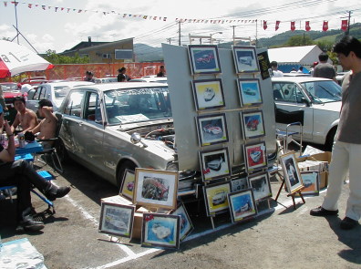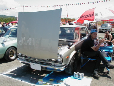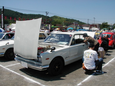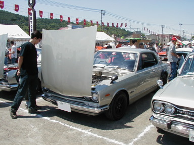 第293話 毎年恒例! 北海道クラシックカーフェスティバルに行く! 2005.7 またまたこの時期がやって参りました! そんな訳で 毎年恒例 2005北海道クラシックカーフェスティバルに 参加して来ました! 若干の規模縮小のようで 去年までは土曜日曜と2日開催の所でしたが 今回は日曜のみの開催でした・・・ しかしながら 前夜祭は開催(入場無料)と言う事で 土曜日 ヨメ号スバル360と共に到着です ここから後の説明はいりませんね・・・・ 当然のごとく 色々な方とお酒を交えてお話・・・・・ 暑いのも相まってさらに酒が進み〜・・・・・・ 夜には PMC・S(プリンスモータリストクラブ サッポロ)のクラブテントにて 焼き肉大会&バカ話大会! デロデロに酔っぱらってよく分からないうちに就寝でした・・・・(笑) さてさて当然のごとく二日酔いの翌日本番!(爆) 天気は素晴らしい程の快晴! 半分グロッキーながらも暖かい日差しで活動開始です!! 回りを見て見ると本番日ともあって ここでしか会えないなつかしい面々が続々と到着です そんな中 今回も遠く大阪からラバーソウル 西社長も到着! 事前の打ち合わせ通り場所取り済みで 私のお隣に鎮座です! 日中は天候もバツグン過ぎて 黒こげ&グロッキー状態・・・・ 午前中二日酔い 午後は暑くて〜・・・・と 1日中ボケボケした状態でしたが このHPを御覧の多数の方に話しかけて頂いたり 知人とハコスカ&Lメカトークで盛り上がったりと 始終楽しく過ごす事が出来ました! この場を借りまして 熱く御礼申し上げます まあまあ こんな感じで なごやかな1日で終わり 来年も是非参加したいイベントの1つです 毎年5月中旬あたりから6月頭ぐらいまででエントリーですので 参加を考えて見ては如何でしょうか? そんでもってボクとハコトーク!(笑) |