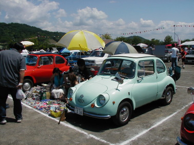 規模の縮小で日曜のみの開催でしたが 人出は上々のようです 天気も最高! 手前が私お隣のハコは ラバーソウルの西社長!はるばるお疲れ様です・・・・ ヨメ号スバル360も別位置で参加! |