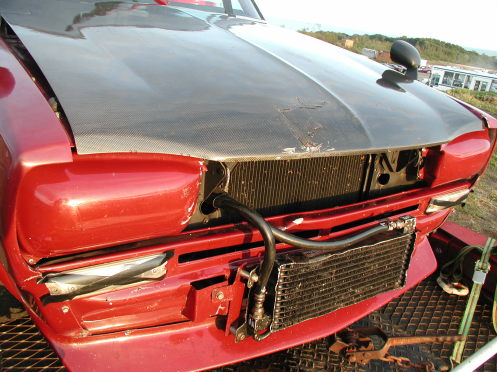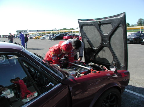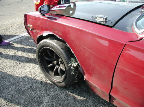 第428話 インターセプター主催 スカイラインミーティングにまた出る! 2007.9 今年も毎年恒例?のスカミの季節になりました! そんな訳でインターセプター主催 スカイラインミーティングin白老の結果報告です! まずはフリー走行からですが 前の予告通り 助手席に師匠を乗せて 色々御指南を受けまくりながら走行! 途中に気温の低さからジェットセッティングを メイン215 エア210に変更 だいぶ調子も上向きになりました 更に2回目を走ってプラグも7番から8番に変更 あれやこれやとバタバタしつつも時間は過ぎ予選にGO! 結局ベストラップは1分14秒9と振るいませんでしたが とりあえず クラス1でレースに進む事が出来ました そんでもって レースの模様はと言うと〜・・・・ まずグリッドスタートで シグナル色が 全く判別出来ずに 他車が出てから気づく始末・・・・ オトボケ満開のスタートミスで始まりました・・・・ そしてLAP3週目・・・・・ 前方車の挙動に対応出来ずに パニックブレーキ状態で追突・・・ 追突直後 まず油圧が正常なのを確認したのち エンジン回りの状況を耳を澄ませて観察・・・・ とりあえずこのまま行けそうなので ひとまずホッと胸をなで下ろしながら 最終コーナーへ立ち上がって行くと・・・・・・・・ 左フロントタイヤにバタッバタッと違和感が・・・・・ 多分 パニックブレーキのスキールで タイヤのトレッドが剥げたのかも・・・・・と感じつつ ブラックフラッグが振られたらレースを諦める事にして そのまま走行・・・・・ その状態は周回を重ねるごとに酷くなり おのずと出来るだけタイヤに負担が少ないよう 走る事に専念・・・・・・・ そしてラスト1LAP・・・・・ フロントウインドにウォッシャー液を出したような水滴が・・・・ 「あちゃ〜 ラジエター逝ったな・・・ 水蒸気の白煙も上がってないし ラスト1週だから油温を見つつ130度を超えたら リタイアするか・・・・・」 そんな感じで最後の1週を走行・・・・ 車の方は最後の悲鳴を上げる事無く持ちこたえ ボロボロながらもレースを完走する事が出来ました 結果は1クラス3位と 一応表彰台に立つ事が出来 色んな意味で完全燃焼でした・・・・ しかしながら払った代償は大きく 左フェンダーはご覧の状態・・・・ 見た目は軽傷な感じのフロントも ラジエター自体がファンとのスキマ 1〜2ミリしかない所まで押している状態・・・・ ラジエターも最後のLAPでファンがかすめてしまい ポタッポタッと冷却水が漏れています なにはともあれ 良くも悪くも 想い出に残る1日でした 来年もまた出たいな・・・・・と思う所ですが さすがに今回は車を治す事をまず考えなければならないので これからの予定は出来るだけこの2ドアGTに 使ってあげたいと思います・・・・「お疲れ様2ドア君・・・」 最後に 今回色々と手伝って頂いた皆様や助けて頂いた皆様に この場を借りてではありますが心より感謝申し上げます 本当にありがとうございました!! |