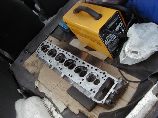 第213話 果たして治るか?・・・・ 2004.7 先週某所より とあるN42ヘッドをゆずって頂きました〜! そのヘッドとは・・・・・ 某氏が3.1仕様に使っていた 面研 IN EXポート拡大修正 IN EXビッグバルブ 燃焼室もハート形の とんでもなく出来のいいヘッドです!! しかしながら 1番EXバルブのトラブルで ご覧の通りの状態です・・・・ 他が大丈夫なだけに〜・・・・ と言う事で修復開始です! まずは 借りてきた焼き釜にてヘッド均等暖め 釜から出した直後バルブガイド急冷でガイド抜き・・・・・ 親方の工場で機械を借りてアルゴン肉盛り& 4番燃焼室から型紙を取って燃焼室加工! アルミの粉まみれになるのも久しぶりなので 至福の一時でもあります・・・・(笑) 後残すは ガイド入れ替え シートリング打ち換え! 足りないバルブ購入ってトコです! カリカリのチューニングエンジンには 不安が残るので使用不可?ですが カムなど穏やか目の仕様だと十分威力を発揮してくれそうなので 3.1仕様の部品集めと同時並行で ヒマを見つけて 進めて行こうかな?と思っています いつかこのヘッドでの3.1仕様完成を目指して頑張るぞ〜! |