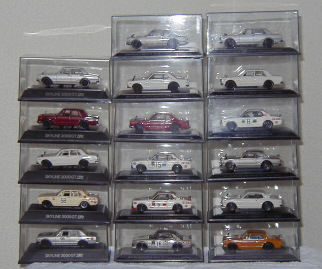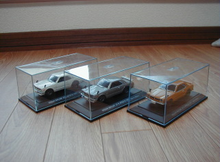 第211話 エブロの策略? 2004.7 4月の時点でコンプリートしたはずの エブロ製ハコスカミニカーですが 5月にまた新製品が3台発売・・・・・・ これはもう集めるしかないっ! と言う事で 狙っていたのですが 家庭の事情もありなかなか・・・・・・・ そんな中 毎年恒例赤平のクラシックカーフェスティバルで お祭り気分に乗じて2台GET!(笑) その後「後1台で揃うんだけど・・・」とゴネまくって 最後の1台を注文しました〜! そして今日到着! これで返り咲きのハコスカコンプリート完了です!(爆) では改めてエブロハコの型番紹介です〜! 43020 4dr 44年式 シルバー 43021 4dr 44年式 レッド 43022 4dr 45年式 ホワイト 43038 4drレーシングアイボリー(58号車) 43072 4drレーシング銀/紺(39号車) 43172 2dr シルバー 43173 2dr ホワイト 43174 2dr レッド 43240 2drレーシング白/青(15号車) 43241 2drレーシング白/赤(6号車) 43295 2drレーシング銀(16号車) 43317 4dr 45年式 シルバー (旧型番43091) 43318 4dr 44年式 ホワイト (旧型番43092) トミカエブロ 2drレーシング白/緑(8号車) そして今回入手分 43581 2drワタナベアルミ仕様 シルバー 43582 2drワタナベアルミ仕様 ホワイト 43583 2drサファリブラウン 純エブロ製ハコスカは全部で16種類 トミカエブロを合わせて17種類です これで当分の間?は満足出来そうですが R380に続きR380Uも集めたい気が・・・・・・(爆) 野望はまだまだ続きます!! |