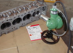 第214話 部品到着・・・・ 2004.7 先回からやっている すぺしゃるN42ヘッド治しですが 先日ようやく1つ部品が到着! その部品とは〜・・・・ インテーク エキゾーストのバルブガイドです・・・・ 実際は 既にガイドを購入してあって 内燃機屋さんで内径と外形の加工が上がったと言う状態です と言う事で 取り付け出来る状態なので さっさと付けてしまいます! それではまず ガイドを冷却・・・・・ 冷凍庫に入れて キンキンに冷えて頂きます! ヘッドの方は ホットガンを使って ガイド穴をガンガン暖めまくります!! こちらの作業は汗ダラダラです・・・・(笑) 適度にヘッドが暖まった所で 冷凍庫からブツを・・・・ ここからはガイドが暖まってしまいますので バタバタと作業・・・・ 木の棒をドリフトにして挿入! ヘッドはアツアツ ガイドは冷え冷えですが いい感じの絞め代で入って行きます 手応え的には これで常温に戻れば 大丈夫なのではないかと・・・・ とにかく バルブガイド挿入完了なので ようやく シートリング周りの加工に出せる状態になりました! 次の作業は結構マニーがかかるので お財布と相談しながら・・・・・・(爆) 完成の日はいずこ・・・・・・ 先回アップ忘れ・・・・1番ポート周りです 比較に置いてあるのは L28ノーマルエキゾーストバルブ デカいです・・・・ |