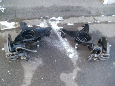今更って感じがしないでも無いですが たまたま130Zのフロントロアアームを 貰う事が出来たので比べて見る事にしました ちなみに左が 130Z 右がハコスカです 強化ロアアームとして流用出来るって話ですが どーなんでしょ? 大きく違うのは稼働部のブッシュ構造で ハコスカは33ミリの穴から始まって 中央に行くにつれ細くなっていて それに伴ってブッシュの構造も円錐状で 締めて挟まれる事によってセンターが出る構造です 変わって130Zですが 外径35ミリの外側カラー付きブッシュが圧入されています ハコスカと幅は同じですがボルトサイズが違うので このカラー付きブッシュのままでは使えないようです ハコスカのブッシュを入れて見ました 外側の当たりは穴径が同じなのでピッタリ入ります ただし中央が細くなっていないストレート穴なので ハコスカのようにボルトを締めた際 センターに寄る効果が薄いかも・・・・ 使えない事は無いかもしれませんが なんにしてもこのままじゃダメですね |