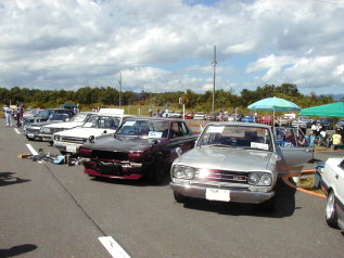 第220話 2日連続・・・・ 2004.8 週末はイベント三昧でした〜! まずは土曜日・・・ サッポロファクトリーにてチョコレートのROYCE主催の 北海道ノスタルジックカーフェスティバルにヨメ号の スバル360と共に参加・・・・・ 展示がメインで 車の近くでのんびり・・・ と言う訳には行きませんでしたが 1台1台プロカメラマンによる撮影があったり (ちなみに後日額入りで送ってくれるそうです!う〜ん楽しみ!) ショッピングモールなので見てくれる人もたくさん! 午前中は天候も快晴でいい感じでした しかし午後からは雨・・・・・・・・ 雨足も時間が経てば経つほどキョーレツに・・・・・・ 後半はほぼ車の中に避難でした・・・・ イベント自体はしっかりした物だっただけに 天候が悪かった事に悔いが残ります・・・・ ちなみにこのイベントは日曜も開催されましたが 翌日は不参加でした・・・・・ それでは土曜日にファクトリーで出会ったハコの皆さまです 左 札幌コンベンションセンターでもお会いした綺麗なGT−R 今回も綺麗ですね・・・・ 右 N氏のGT−R こちらも・・・・凄く綺麗です・・・・ どちらも凄く羨ましい限りで・・・・(笑) そんでもって翌日日曜日 サッポロファクトリーでのイベントに行かずどこへ行ったかと言うと〜・・・ 44GT−Rはケイコさんドライブ ボクは前日の晩修理完了の2ドアGT 途中 S氏のハコと合流し 白老にて行われた はぎのオールドモーターフェスティバルに参加・・・・ 当日は昨日とは打って変わって快晴! いつものごとく ハコオーナーや顔見知りの方々と 数々のトークで至福の時間・・・・・・ 昼からは GT−Rのラジオを付けて 高校野球 北海道初決勝進出の 駒澤大付苫小牧高校の試合状況を キャンピングテーブルとパラソルの下で聞きながら 和やかに楽しい時間を過ごす事が出来ました! 来年も時間が合えばまた参加したいイベントですね!! なにはともあれ 参加された皆さん スタッフの方々 お疲れさまでした!! それでは はぎのに来られたハコの皆さまです!! まずは昨日晩まで苦戦した2ドアGT・・・・ 合流したS氏のハコ! たけちん氏のハコ! |