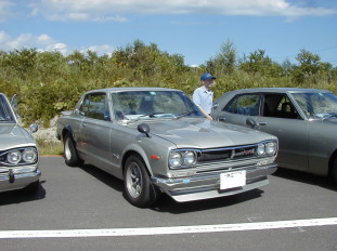 天気は快晴!と言うか 暑すぎです・・・・ ハコスカはボクのを含め4台・・・ お馴染み渋ハコ氏のハコ! こちらもお馴染み まさ〜し氏のハコ! |