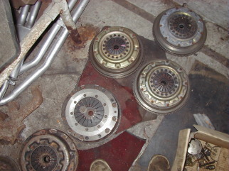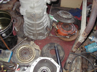 第236話 スカミのお片づけ・・・ 2004.10 先日のスカイラインミーティングリロードのお片付けと言う事で 壊れたクラッチ?を治す事にしました! もうイヤと言う程ミッションの積み卸しはやっているので パッパと降ろしてしまいます・・・(笑) そんでもって問題のクラッチは〜・・・・・ ん? あれだけ音がして壊れたので 崩壊したと思いきや 意外に綺麗な状態・・・・・・・・ それじゃあミッションか?? いやいややはりクラッチ!と言う事でよくよく見て見ると〜・・・・ す・・・スプラインが綺麗さっぱりありません・・・・・ じゃあ ミッション側もヤバいのでは? と思って見た所〜・・・・ クラッチスプラインの当たり後が普通に付いてるだけで 全くもって異常無し・・・・・ 問題のクラッチ・・・ん?綺麗だな?? ミッション側は〜・・・異常無しです!(ホッ!) とりあえずこのクラッチは使用不可なので 違うクラッチをつける事に・・・・・ そこらあたりに転がってるやつらから適当に〜・・・・ ん?フライホイールは軽い方がいいかな! と言うノリで 一番軽かったOSツインAタイプに決定! 決まったからには ブレーキクリーンとエアーで徹底洗浄! 一応ディスク残りも確認して〜・・・まだまだ全然OK! それでは組み付け! センター出して〜・・・・ ミッションと合体・・・・ ペラシャやらなんやらを付けて〜・・・ ホイ完成! 1人作業ながらなんとか半日で終わりました! それではテスト〜・・・・ おっ!ちゃんとクラッチも切れる!(笑) 周りも暗くなって来たので フィーリングを確かめる実走は 後日に持ち越しと言う事で・・・・・・・ 雪が降らないよう心から願うばかりです・・・・・ なんとか半日で作業終了! |