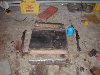 漏れ漏れのハコスカラジエター・・・ 各所はんだ付けされているだけなので ガストーチで炙って解体 解体完了! この後デジカメが故障・・・・ |
