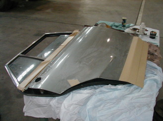 FRPクロスの他 道具 材料的にはこんなもんです まずはお遊びでフロントマスクを・・・ 離型してこんな感じに・・・ あくまでお遊び・・・ そしてメインの4ドアリアドア・・・ 2プライ貼った後に離型 でもこれを使う訳じゃありません 完成したドアですが 表に見えますが裏側です この裏が型になります |