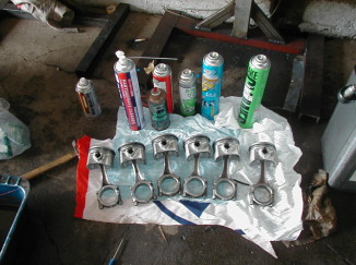 第276話 洗浄!! 2005.4 さてさて・・・GWの作業第2段 腰下の作業に移ります! まずは下準備!と言う事で 部品の洗浄です! そこで登場するのは ブレーキクリーン! と行きたい所なんですが 貧乏な為そんなに何十本も買えません・・・・ と言う事で初期洗浄は灯油で行います! 適当な一斗缶に灯油を入れて 洗浄ガンで徹底的に吹いた後 これまた徹底的にエアブローして行きます! まずはブロック・・・・ 錆防止の為塗りたくっていた スプレーグリースを溶かし落とします! そしてエアブロー・・・・・ 仕上げで使うのは〜・・・・ 見ての通り 安売りの時買い貯めた物なので メーカーがバラバラのブレーキクリーンを使って洗浄・・・ そしてまたまたエアブロー・・・・・ ホイ! ブロック完了! お次はクランクです!! 行程的にはブロックと同じですね・・・・・ これまた完了! お次はピストン・・・・・ これまた同じ事をやって・・・・・・・ これで組める状態になりました! 今すぐ組み始めたい所なんですが 気持ちを切り替える為組み立て開始は明日に持ち越しです! 連日作業の予感ですが 出来る限りGWを有効に満喫したいと思います! ヨメに愛想つかされない程度に・・・・・(爆) |