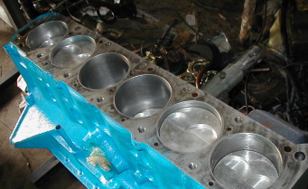 第277話 腰下でGO! 2005.5 さてさて 連日作業第3段! 腰下の組み付けに入ります! まずはメタルを置いて〜・・・・ ちなみに今回は純正メタルでは無く 気張って購入したニスモメタルです・・・・・ 経験では純正と比べて全く差が分かりませんが 気持ち1馬力アップと言う事で・・・・・(笑) そんな話は置いといて作業を進めます!・・・ まず 一応クランクの曲がりを測定・・・・・ ダイヤルゲージを見ながら ゆっくりクルクルと〜・・・・ え〜っと・・・・振れが0.06(ミリ)だから曲がりは0.03・・・・・ おっ! 立てて放置してたからか結構優秀です! ちなみに曲がっていたとしても LDクランクは 曲がり真っ直ぐって感じで 0.1くらいならプレスで押して修正の後 使っちゃいますが・・・・・ なにはともあれ状態は良いようです!! さてさてお次はオイルクリアランス測定と親メタル合わせ・・・・ プラスチゲージの赤を〜・・・って在庫無し・・・・ なので余ってる緑で測定! ちぎってゲージを載せたのち 組むのと同じで 3キロ 6キロ 8キロと3回に分けてトルクレンチで締めて行きます! そしてプレート式トルクレンチに持ち替え 組み付けの逆順で3回に分けて緩めて キャップを外した後 プラスチゲージのつぶれを確認! プラスチゲージが緑なので 0.03よりつぶれが線一本狭くなってれば 0.05ぐらいです 狭い所で0.03 広い所で0.06 上手く狭いトコ広いトコ対になってるみたいなので メタルの組半分だけ位置を変えて 交換したトコだけ再度測定! (締め付けは組むときと同じで全部絞めます) そして取り外したのち交換位置の再度確認! 大体0.05±0.01に収まったようです オイルクリアランスはこれでOK! プラスチゲージの後をしっかりと拭き取って 組み付けに入ります! メタルにオイルをタップリ塗って〜 キャップ一箇所絞めたらクランクを回して重くならないか確認・・・ 逐一油差しでオイルを垂らしながら トルクレンチで3度に分けてカチカチと〜・・・・ ・・・・・・・・・・・・・・・・・・・・・ ・・・・・・・・・・・・・・・ ・・・・・・・・・ ホイ!クランク取り付け完了! お次はピストンの挿入です! コンロッドにメタルを付けて たっぷりオイルを塗って ピストンリングコンプレッサーを使って スコスコと挿入して行きます! 6発入れ終わったらクランク側にひっくり返して 親メタルと同じく オイルクリアランス測定・・・・・ こちらはクランクの位置関係上2発づつしか出来ませんので 1番6番 2番5番 3番4番の順で測定&ゲージカスを ふき取りして行きます! おっ!上手い具合に0.05前後だ! こちらはそのままで行けそうです! それでは 本締め! こちらもメタルに十分オイルを垂らして〜 締め付けは2段階で3キロ 5.5キロで またまた逐一クランクジャーナル クランクピンにオイルを垂らして〜・・・ 測定と同じく1番6番 2番5番 3番4番の順に締めて〜・・・・ ホイッ!! 腰下が完成しました〜! 最後に 今がチャ〜ンスと言う事で 缶スプレーで色をシュ〜っと・・・ 今日の所はこれぐらいにしといてやる!(笑) と言う事でお次の作業はヘッドとの合体作業になりそうです! |