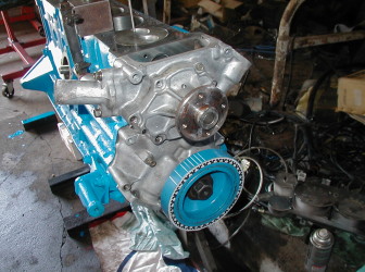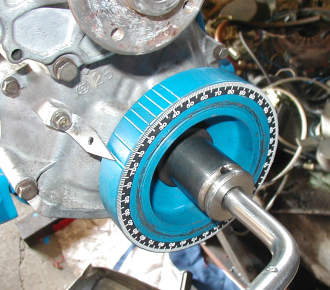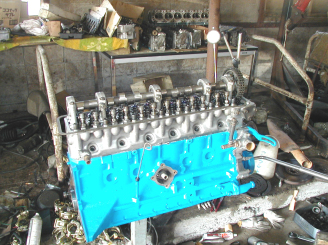 1番 上死点出しで〜す! フライホイール側にペンで注記しますが フロントカバー針の芯だしもついでに それではヘッドを載せて〜・・・ 締め付け開始! 今日はここでおしまい! |