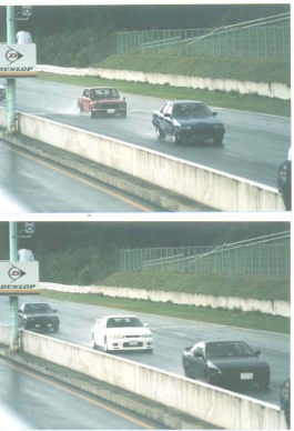 第39話 くっちゃん・・・ 1999.8 一応 北海道でも あつ〜い日が続いています・・・ そんな中 倶知安の HSP ( 北海道スピードパーク )で 走行会がありました 当日は雨&新旧車混走なので あまり無謀な事は出来ません と言うか L20だけに どう考えても ボクが1番遅そうです そんな事はおいといて 払った分は走らないともったいないので 精一杯 走る事にします 足の具合はかなりいい感じです 後 ブレーキも・・・・・ しかし 立ち上がりとホームストレートは もの凄い早さで抜かれてしまいます こんなに性能差があると 抜かれる方もコワいです・・・ (抜く方もか・・・・・) とにかく 怖いながらも猿のように走りまくりました・・・ はぁ〜・・・・ サーキットは面白いんだけど もっとパワーが欲しいな〜・・・・・・・ 3Lの夢が頭の隅をチラチラと掠めるのでした・・・・ |