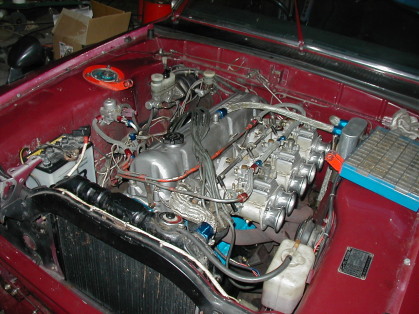 第379話 ようやく搭載・・・・ 2006.12 体調不良と仕事の都合で伸び伸びになっていましたが 復活した3リッターエンジンをようやく搭載しました! 作業開始前どうせエンジンも降りている状態なので もののついでで ミッションも71Bから これまた修理完了の6速ミッションに変更しての搭載です! まあまあ幾度と無く1人で載せたり降ろしたりしてる為か ミッション結合も一発で決まり搭載完了! 後は諸々の補機類を付けて〜・・・・・・ 最後にキャブを・・・・・・ と・・・ここで前と同じソレックス50を付けても面白く無いので キャブを変更する事にしました! その変更するキャブとは・・・・ じゃじゃ〜ん!OERの50です!! 実のところ ソレックス50と同時期に入手していたのですが 身近に使っている人がおらず セッティングがあまりにも未知なので 手が空いたら試そうとほったらかし状態になっていました・・・ これでようやく搭載です!(笑) ソレックス50の時は パイロット70 メイン260 エアー220 となっていましたので まずは初期セッティングと言う事で パイロット67.5 メイン250 エアー220にして見ました! 実走行は雪が融けてからになるので 来シーズン開始直後からセッティングで 楽しい日々を過ごす事になりそうです!(笑) そんな訳でキャブもOER50に変更と言う事で 海の物とも山の物とも解らない状態・・・・ もしお使いの方がおられましたら 色々と教えて頂けると助かります・・・・・・ |