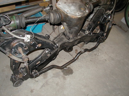 スタビベースを作ってR31と同じ幅に合わせ溶接 スタビの取り付けですが〜こうカットして コレをひっくり返せばマフラーの逃げはOK (画像はひっくり返してない状態) まあ やってる事は294話のDRスタビ流用と変わりませんね・・ カットした所を点付けで溶接 こちらのスタビは中空なので 補強に棒を挿入 (棒では無く雑ボルトですが・・・・) スタビのテンション受けも点付け溶接・・・ そうするとこんな感じに・・・・・ 本溶接は車に取り付け確認してからなので ここで一応完成!と言う事に・・・・ |