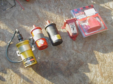 マロリーのハイファイヤ29025と プロマスターコイルです コイルのピーク電圧が67000V!! 他のアメリカンCDI軍団でも このコイルだけは使用不可になってたりします さすがに低〜中回転はバツグンに良かったです しかし コイルを変更すると かなりショボイ感じに・・・・ やっぱり・・・と言うか かなりコイルに依存してるようです 皆さんご存じMSD6ALとブラスター2コイルです タコが動かないトラブルがあるようですが 社外タコなどの電圧式だとタコアダプタPN8910 日産純正の電流式タコだとタコアダプタPN8920で タコが動くと言う情報を頂きました アナログ動作なので変なノイズを拾っての誤作動も 今のところありません 値段と性能を考えると1番いい感じです 現在2ドアGTにブラスターSSコイルと合わせて使用中 (この画像は故障した時のストック品) 最後はMSDの7AL セッティングが多少濃いめでもお構いなし!(笑) 今まで使った点火装置の中では最強です! しかし・・・・走行会でボッシュのCDI用コイルが全焼・・・・・ 説明書にも短距離レース用で長時間高負荷は コイルの保証をしないと書いてあります・・・・ |