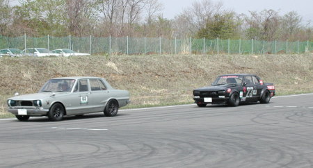 まずはN氏のケンメリGT−R! いつ見てもソツの無い輝き具合・・・・ 私も見習わなければ・・・・・ 走行会中バックミラー越しにこの姿が もの凄い勢いで接近・・・・ ムキャ〜怖い〜・・・(笑) カーボンカナードなんかも付いてたりして |