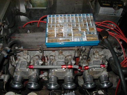 かねてより計画していた キャブを40からチト大きめサイズに交換します どれをバラして付けるかな〜・・・・ 左はソレックス44 右はOER45 後ろはお疲れ様の純正ソレックス40 珍しいもん好きなのでOER45を付けて見ました 走っちゃジェットを替え 走っちゃジェットを替え・・・・ 現在も大苦戦中です・・・・・ ちなみに現在パイロット52.5 メイン165 エア200 ポンプ40 アウターとインナーベンチュリは標準のまま・・・ 「誰かOER45をS20に付けてる人居ますか〜・・・」 |