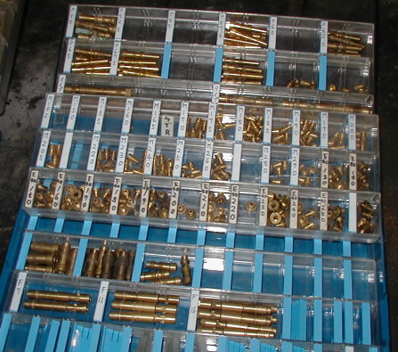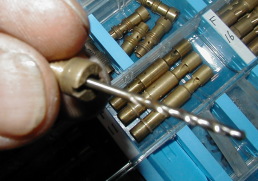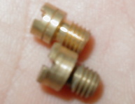ソレックス用とOER用でケースを分けました エアはソレックス40資産でなんとかなりそうです メインは・・・・今回必要そうな番手がありません・・・ しゃーないから土台を手に入れてそのうち 作るか買うかします・・・・・ 左 メイン用ミクニ丸小タイプ 右ソレックス40エア どちらもミクニ純正ですが ソレックスに使われるのは通常丸大タイプで こちらも線の入ってる位置が違う物があったり数種有ります OERに使えるのは丸小タイプで 同じミクニ丸小でも線の位置に違いがあり 番手と穴径が合ったり合わなかったりします 当然本当のOER用もありこちらの刻印はSになってます ソレックス40エアは角の面取りの有り無しがあります こちらがミクニ純正とOER純正エア (左ミクニ 右OER) 作るのも検品するのも コンマ1ミリ単位のドリルセットで・・・・ 穴を開け終わったら その大きさのドリルの尻をトーチであぶって 拡大したジェットの穴に入れてみます 入らなければジェットは完成! 入るようだったら穴開け失敗で 更に大きいサイズの土台になります(笑) ※グイグイ無理矢理入れると入っちゃうので要注意! |