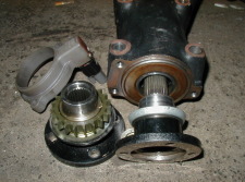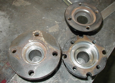 第480話 ついでのデフ&デフU(笑) 2008.8 さてさて 先週組み替えたデフを デフ置き場にゴロンと置いた所 視界に入る数個のデフ・・・・ あっ!そうだ・・・・・・ これも入れ替えるつもりで 放置したまんまだったな・・・・・・・・・ そんな訳で完全に忘れていたのを思い出しついでで 今週もデフの組み替えを決行です! 今回はお互いリングギアボルト10ミリなので これまた入れ替え戦です と・・・・その前に・・・・・ 今まで色々とデフをバラす度に 新しめのR200デフ系(R200V系含む)大きめ 丸コンパニオンフランジが何個も余ってしょうがないのと 毎度毎度ハコ用フランジ不足に見舞われていたのですが この余っているフランジで ハコに使えるコンパニオンフランジから採寸して 使えるように加工してもらいました! 出来上がった物を見て今思うと 外周の加工は不用だったかも・・・・・ まあなんにしても 使う用途の無い 基地のコヤシが使えるようになりました!! 加工してくれた Kさんありがとうございます! 加工代金は勤労奉仕と言う事で ご用件がございましたら なんなりとお申し付け下さい(笑) 話は戻ってまたまたトルクレンチを片手に カチカチしながら さっさと組み替えて行きとりあえずLSDの方が先に完成! お次は4.1に入っていたオープンデフを 3.9に入れる作業なんですが・・・・・ う〜ん・・・・・・・オープンを戻すって考えただけで 全く気分がノッて来ない・・・・・・・ でも このままバラした状態で放置していても どうしようも無いし・・・・・・・・ そんな訳で時間もある事だしデフロックの作成を開始! まずはベアリングをプーラーで抜いて外した後 サイドギアとピニオンギアを溶接で合体! 十分に気の済むまで合体させたら お次はピニオンギアとデファレンシャルケースを合体! これまた納得いくまでバリバリ溶接・・・・ 後は自然に冷ました後 スラグ スパッタを十分に取り除いたら サイドベアリングを新品に交換・・・ なんて事はしないので 先程外したベアリングを左右間違わないよう 再び圧入すれば〜・・・・・・ ホイ!R200デフロックデフ玉の完成! 玉が完成したので早速組み込みです! これまたトルクレンチでカチカチと・・・・・ とりあえず違和感無く入りましたが バックラッシュ計測と調整 歯当たり調整は 使う時が来たらやろうかと思います・・・・ まあまあその時が来るかどうかは全く不明で それまでは再びキチのコヤシなんですが とりあえず先週に続き怪しげなシロモノが またまた1つ増えたと言う事でヨシとします(爆) |