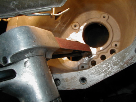 第482話 ミッションがあっても釜が無い・・・ 2008.8 先週ダメダメCミッションを4個1して R32タイプMミッションが1つ復活した訳ですが 手持ちの71C用釜は 既にストックミッションに装着済みなので ミッションはあれど 釜は無し・・・・・ しかし このまま ミッション中身だけ転がしておいても しょうがないので 久々の71Cミッション釜作成に入ります 丁度タイミング良く2つ程71B釜を外して置いてあったので こいつらを加工して行きます! 加工の方法は 色々な方が既にやっておられる事なので 詳しくは説明しませんが まずは1〜2フォークロッド穴の拡大と言う事で いきなりドリルでズドンと拡大・・・・・・してしまうと シフトが入ったまま帰って来ない等々 トラブル満載なので 丁度バラしたミッションもあるし そのアダプタープレートをぶった切って こんな穴開け治具を搾取しました! そしてこの治具をガイドにしながら 1〜2シフトフォーク穴を14ミリから16ミリに拡大して行きます 穴の大きさの確認は ミッション自体を仮組みした時に シフト操作して見て 動きが渋いようだったら アジャスタブルリーマで少しづつ拡大しようかと思います まあまあ今時は 釜の穴を拡大するよりも 1〜2フォークロッド先端を14ミリに細くする方が トラブルも少ないし一般的なんですが 加工に持っていかないと出来ないので 自分でなんとかなる方法と言う事で オイラはコチラの手法で行きました・・・・・ ではでは加工に戻って・・・ お次は後はミッションケースの方から見て カウンターギアフロントベアリング回りのリブが カウンターサブギアに当たるので ベルトサンダーを使って 回りの出ているリブを削って行きます これで加工は完了です 後は 組み付け時 カウンターフロントベアリングを 71B用に交換して組めばOKとなりますが 組もうと思っているミッションは 既に一度71B釜と組み合わせた71CタイプMミッションなので 交換は無し・・・・・ これで物も揃った事だし 近いうちにヒマを見て ミッションを完成させたいと思います まあまあ お盆休みも無く仕事も忙しいので いつになるかは全く不明ですが・・・・・ |
