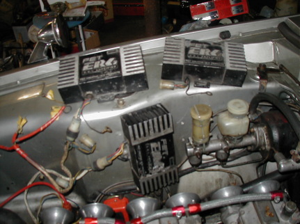 今日まで慣れ親しんだ FET極東のエルグCDIとも 今日でお別れ・・・・(上の2個は予備) まあ手放す訳では無くただ単に点火系の変更ですが(笑) そんな訳で今日からはこのMSD6Aで ばっち来〜い! タコは既にオートメーターだし デスビは当然マグネットで イグナイターも内蔵で不用になり配線も若干簡素に・・・・ 天気が最悪なので乗った感じはまだ解りませんが 車庫内では 荒くアクセル操作して不用意にポンプが働いた時も キャブのバタつきが少なくなったように感じます 他は今のところ何も変わらない感じです(笑) しかしいきなり飛んだら怖いので このフルトラをトランクに搭載しておきます これでもしもの時も一安心! |
