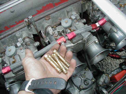 第488話 休みは無いけど・・・ 2008.8 仕事の方が休み無く忙しくなかなか手が着かないのですが 帰宅後の時間を狙って 4ドアの ソレックス44キャブセッティングを続けています 現状は P55 M150 E230 Po50なんですが どうやら 今日の気候だと 中〜高回転が重く メインが濃いようなので まずはメインを落として見ました これで P55 M145 E230 Po50になりました・・・・ この状態だと6000〜は良いのですが 5000〜5500あたりが薄くなるようで その辺で谷が生まれてしまうようです・・・・・ これじゃあマズいので メインの効きを動かす為 ちょっとエアを絞って様子見・・・ 現状P55 M145 E220 Po50で多少改善?しましたが 厳密に言うと谷の位置が4500〜5000あたりに 変わっただけのようです・・・・・ チマチマ少しずつ番手を替えても 体感麻痺で何が何だか解らなくなって来たので 指向を替えて 気になっていたポンプを変更する事にしました 現状アクセルを荒く踏むと 短期的に濃すぎるようで ベタっと踏んだ時加速と言うよりは 一度トルク感が重くくなって一息後に 加速感を感じるので 同時間濃度を薄くするのと吐出時間を更に長く取る為 ポンプを50から40に変更・・・・ ベタッと踏んだ時はこちらの方がマシなようです・・・ さてさてアレ替えコレ替えしましたが 今日の所はここまで・・・・・ まだまだ全然納得行かない状態ですが また時間を見つけてボチボチ進めようと思います・・・ そんな訳で今日の所は 現状P55 M145 E220 Po40にて終了・・・・ |