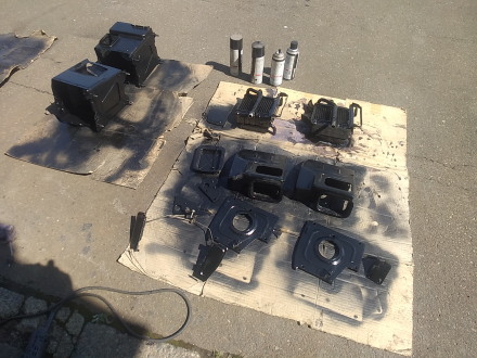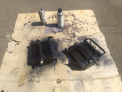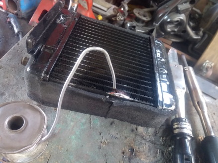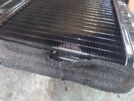 ![]() ヒーターコアのお手入れを始めようと思います ついでなので部品取り含め集めて来ました 単なる分解清掃で済むといいんですが・・・ ![]() 外見はそこそこマトモでしたが 分解して行くと〜・・・あら〜サビサビ コアに合体してるはずのフラップも 外れてました・・・ ![]() あ〜ら残念 接合部何箇所から 漏れがありました フラップも外れてるので取り付けるのと合わせ ハンダで修理します ![]() この辺も漏れてるようなので 穴埋めします ![]() 最後に外れてるフラップをハンダで取り付けて 水に沈めエアブローして 小穴が塞がってるのを確認しました ついでにもう1台ぐらい同じように お手入れしておきます 最後にカンペで黒に塗ったら コアの修復は完了です |