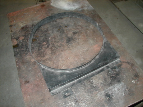 ファンシュラウドを貰って・・・・ いや・・・・・借りて来ました(笑) パーツを採寸してテンハチ板から切り出したら 形通りに折り曲げて行きます 出来た部品を点付け溶接の集合で組み合わせて ついでに色を塗ったら〜・・・・ ニセモノ完成!(笑) |