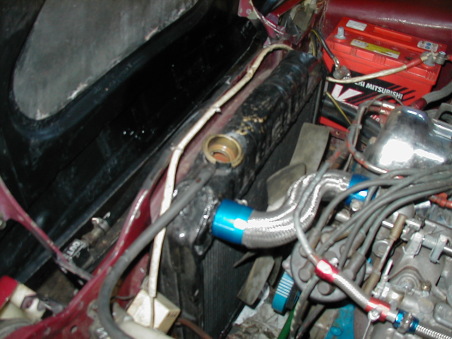 第504話 せっかちなもんで・・・ 2008.12 さてさて・・・先週コピー品を作ったシュラウドですが エンジンを眺めていたら ふつふつと装着したい気分に・・・ まあまあせっかちなもんで思い立ったら即実行!(笑) そんな訳でさっさと取り付け開始です まずシュラウドを付ける為には ラジエターを外して 先にシュラウドをファンの所まで入れる必要があるので 冷却水を抜いたらラジエターを外します ラジエターが外れたら 装着感を確かめるべく シュラウドをラジエターにあてがって遊んで見ます(笑) あれこれ色んな角度から見て 取り付け後の想像を膨らませた所で 早速取り付けです! シュラウド入れて〜 ラジエター付けて〜 冷却水入れたら〜・・・・・・ ホイ 取り付け完了! それでは装着テスト開始! まずは取り付けが間違って無いか ファンとの隙間を確認して 手でファンを回して見ます! ・・・・・・・・・・・・・・・ 適当に作った割には接触とクリアランスはOK! お次はおそるおそるエンジン始動! ・・・・・・・・・・・・・・ ・・・・・・・・ ・・・・ アイドリングではなんとも無いようです そのままの状態で水温が50度を超えるまで放置・・・・ その間に前に回って吸引力の状態を見て見ましたが どこぞの外国製掃除機のうたい文句ではありませんが アイドリング状態でも目に見えて吸引力が増しているようです! なので冷却もさぞ向上している事でしょう!(笑) そんな事をやってるウチに水温が50度に到達! 今度は6000回転あたりまでエンジンをふかして 取り付け状況を確認します! ブォン ブォ〜〜〜ン ・・・・・・・・・・・・・ 特に異常は見当たらないのでこれで取り付け完了! せっかくエンジンを始動したついでなので 油温を90度あたりまで上がるぐらい回しておこうかと・・・・ ・・・・・・・・・・・・・・・・・・・・・・・・・ ・・・・・・・・・・・・・・・・・・・ ・・・・・・・・・・・・・・・ ・・・・・・・・・・・ ・・・・・・・ 待てど暮せど水温が60度以上上がりません・・・・ どうやら今の時期だと 完全にオーバークールのようなので ラジエターの前にダンボールを装着! この状態で油圧が2キロ以上を保ちつつ エンジンを回すこと30分以上・・・・・・ ようやく油温が90度に到達! ゲホッゲホッ・・・・ おかげで車庫の中は排気でご覧の状態ですが 多分冷却効率は増したと言う事で 1人ニヤニヤしながら至福の一時を過ごしております(笑) |