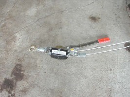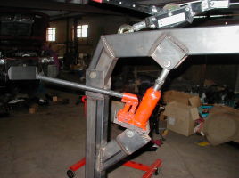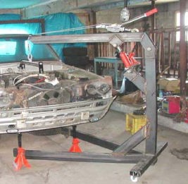 第58話 作る・・・・ 2001.6 先月 あまりにも激貧な生活が身にしみた為 ほったらかし気味だった レストアを進める事にしました! (これなら燃料代もかからないしね!) まだエンジンも降ろしてないので まずエンジンを降ろす事に! 「チェーンブロックを柱に掛けてと・・・・・」 みしっ・・・・みしみしっ・・・・・・・・ 嫌な音がします・・・・・・・・ 良く見ると・・・・・・・・・ 上げるためにアテにしていた梁が弱いようです・・・・・ これじゃ 上がらない・・・・・ 「エンジンクレーンが必要だな〜・・・・」 んじゃ〜買うか! カタログを見ます! んーーーーーーっ! ごまんえんーーーーーっ! そんなの絶対に買えません・・・・・・・ ハイ となれば作りましょう! まず材料の調達から! 根本的にタダを目標として 知ってる人に片っ端からクレクレコールを送ります! 2〜3日後・・・・・・ 意外にあっさり職場の先輩から情報が! その先輩の知り合いがビルの建材屋さんで 端材をタダで頂けるそうな・・・・・・ ありがたやありがたや・・・・ 頂きにあがったついでに 高速カッターを貸して頂き 頭に描いたクレーンの姿通り 必要部材を切り出して行きます 軽くお礼をした後(当然頭を下げただけですよ!)積み込んで 秘密工場へGO! 寸法は解りやすいよう 100とか150とか200とかに切っているので そのまま いきなり溶接開始! バチバチバチ・・・・・ ん・・・・・・・・ どうやって エンジンを上げるか全く考えて無いな・・・・・ ・・・・・・・・・ 回りに転がっている物を見ると・・・・・・ 丁度いい具合に ワイヤー式の荷閉め機が転がっています! よし! これを使う事に決定! 定格も2トンなので十分! ・・・・・・・・・・・ と思ったら 戻し機構が開放型です・・・ (要するに 解放すると吊り荷がストーン!) 上げる機構は使えるとして 問題は降ろす方・・・・・ もう1度 本物のエンジンクレーン写真とにらめっこです・・・ 「ん・・ 油圧の押しシリンダーで上げてるのか・・・」 油圧シリンダーと来れば! ボトルジャッキ! ボトルジャッキが安いトコと言えば トラックの解体屋さん! (ちなみにトラックの解体屋さんはオイルクーラーのコアも安いですよ〜) さっそく行ってゲットして来ました 価格は交渉の結果500円・・・ まあ これぐらいの出費はしょうがないか・・・ おまけでそこら辺に転がっていた シャーシーとボデーの固定ボルトも5本ほどもらって来ました 次は見よう見まねでジャッキ取り付け部の作成と溶接! 意外と簡単にアームの昇降機能を作る事が出来ました ん・・・・・・ 当初ワイヤーを使って上げるように作ってたから ジブフートピン(吊るさきっぽ)に滑車が必要だな・・・・・ 回りを見ても 適材がありません・・・・ こんなの安いだろ・・・ ホームセンターに向かいます! ありましたありました 金属滑車! お値段は・・・・・ おわっ!意外に高い・・・・・・ 使えそうな物もナイし買うか・・・・ 300キロ滑車2枚で3000円也・・・ 帰ってすぐさま取り付けます! 形になったので動作テストおば・・・・・ キコキコキコ・・・・・ちゃんと上がります! やった〜エンジンクレーンだーっ! ・・・・・・・・・って 車輪がないから移動出来ない・・・・・・ またまた廃材の中を見回してと・・・・・ 訳の解らないベアリングが転がっていました これなら重さにも耐えられるし 使う事に決定! 適当なパイプを切って溶接! 前輪はこれでヨシ! 問題は後輪だな〜・・・・・・・・・・ ゴミをあさりながら考えて見ましたが 全然いい物がありません・・・ このままでは進まないので またホームセンターに逆戻り! これで3度目の散在です 自由車輪100キロ用2個購入! 締めて1000円也・・・・・・・ すぐさま帰ってすぐさま取り付け! 適当な雑ボルトで固定! ははははは〜! タテにも動くし横にも動く! (あたりまえか・・・・・・) 後は使って見るだけか〜・・・・・・・・・・ 重さでグニャっと行ったりして・・・・・・ さて実験・・・・と言うか いきなり使用します! キコキコキコ・・・・・・ キコキコキコキコ・・・・・・・ キコキコキコキコキコキコキコキコキコキコキコキコ・・・・・ あっ!・・・・ マウント外してない・・・・・・・・ 車もろとも上がってました! ついでに荷重試験も終わってしまいました・・・・・・・ エンジン&ミッション程度ではビクともしないようです・・・ よかったよかった・・・・と言うか危なかった・・・・ これで 気兼ねなくエンジンが降ろせるようになりました と言うか 作るの夢中で レストア進んでない・・・・・ まあ 楽しかったからいっか〜! |