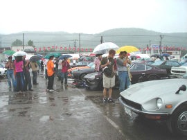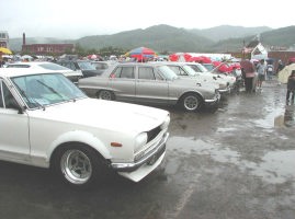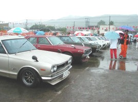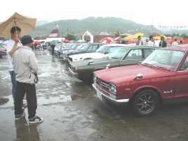 第60話 HCCF! 2001.7 またまた 北海道クラシックカーフェスティバルの時期になりました 今回はGT−Rで初めての参加です 家から赤平市まで2時間程度のドライブがてらイベントに出発 前日の天気予報では曇りとの予想をうらはらに 空は大雨・・・・・ ぎょえ〜っ!ワイパー遅しっ!・・・・・・・ 動きのシブいワイパーに苦戦しながら 休憩地点 桂沢湖へ到着 コンビニで朝食がてら おにぎりをむさぼっていると 空が快晴に! 後は 今までのうっぷんを晴らすように桂沢湖のワインディングをドライブだ〜っ! う〜ん今日も調子が良い・・・・・ (自己陶酔中・・・・・・) そして赤平市に近づくにつれ 見慣れた旧車がちらほらと出現! 無事赤平に到着し エントリーを済ませると 懐かしい1年ぶりの面々が続々と到着して来ました 7日の参加台数は200台前後と 前夜祭ながら活気あふれる1日で ボクもビールを片手に (これが後で災いするが・・・) お互いの話でおおいに盛り上がりました 5時頃には西社長も到着し (今年西社長は4ドアとサファリブラウン2ドア 2台のGT−Rで参加されていました)各オーナーの方々と和やかな時を過ごし・・・ と行きたいトコなのですが 夜の部?が始まるまでに 朝からビールを15本以上 飲んでおり 写真を撮ってないばかりか 後半部分の記憶すら無い状態・・・・ その日の夜は何を話したのか・・ 何時に寝たのかすらも解らず終了・・・・・ 8日 北海道クラシックカーフェスティバル当日 二日酔いながら5時に起床! (旧車乗りの朝は早い・・・) 前日の晴天が嘘のような大雨で 来場者や盛り上がりに不安が残りましたが そんな事はおいといて・・・ 前日の失態の事情聴取に追われながら (結局ろれつの回らないハコスカ馬鹿がビール片手に徘徊してた・・らしい・・・) 開場を待つと 以外や以外結構な人出で 当日の参加台数も350〜400台と このイベントの大きさを再認識し 中でも会場の3分の1は日産車と 日産旧車乗りにとってはたまらないスタートとなりました 会場に来られた来場者の方々も 雨に負ける事無く 旧車の数々を鑑賞されていました 日中は自分の車はほっといて 西社長やPMC,Sさん(プリンスモータリストクラブサッポロ) AKOさん(札幌の東雁来で床屋さんをやっておられます) のブースで二日酔い治療の迎え酒 (結局ただの酔っぱらい・・・) 前日マトモに話せなかった事を含め 大いに盛り上がりました・・・・・ う〜ん・・・・・結局例年同様 酔っぱらいに徹してるんだな・・・・ 楽しいのでヨシとします・・・ ![]() 今年はおまけにこんなんも・・・ ムフフ・・・・・ |