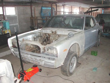 結構バラした後の写真・・・ GTーXです! 後ろ姿・・・ はっきり言って 乗ってたGTよりも かなり程度がイイです・・・・・・ こっちがベースでGTがドナーか? おまけ! ハコスカ3台そろいぶみ〜! 光景は最高 でも2台は動かない・・・・ |
